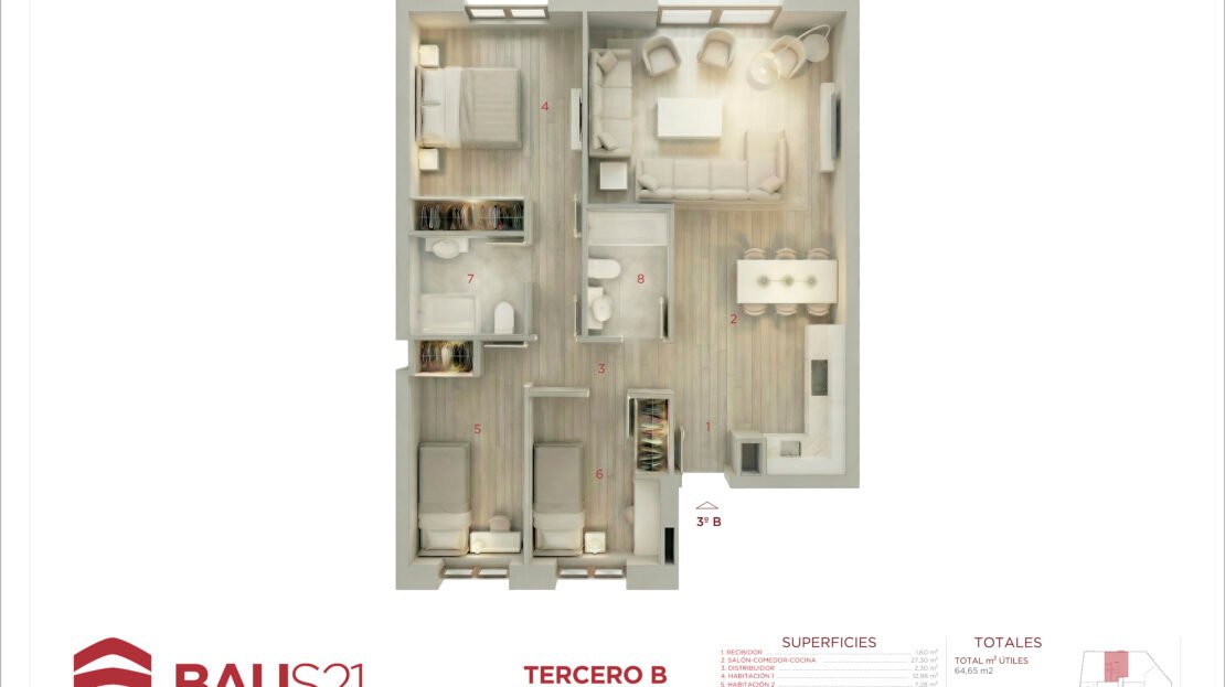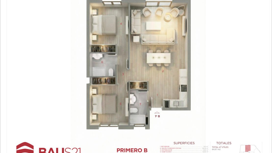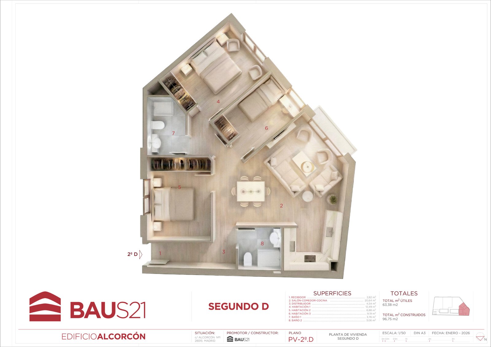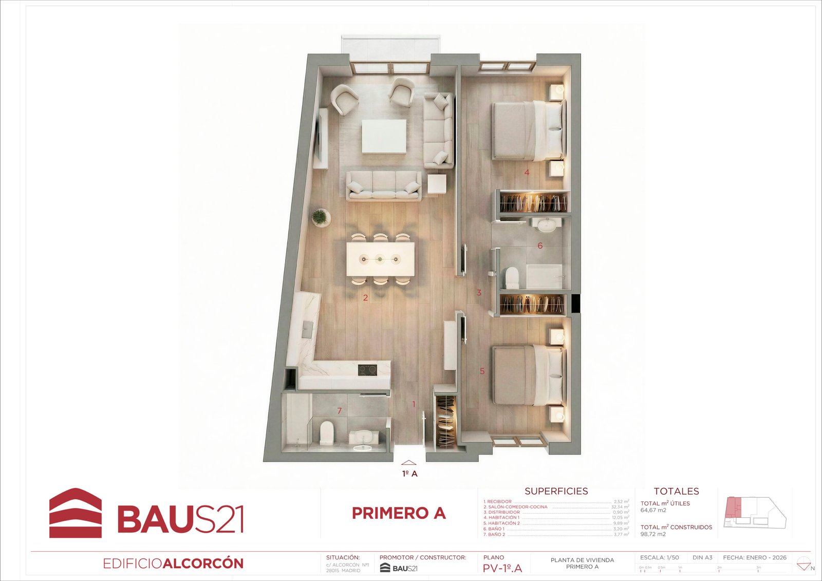 • 3 Dormitorios (con posibilidad de conversión a 2).