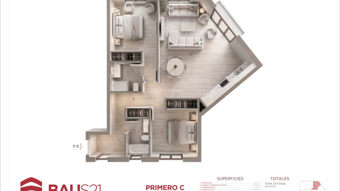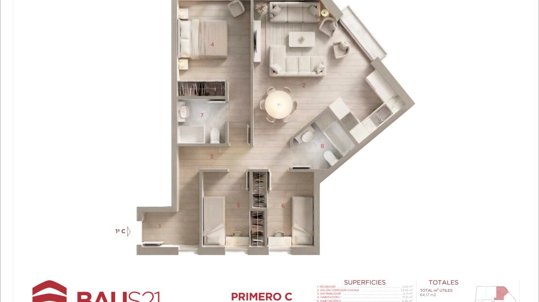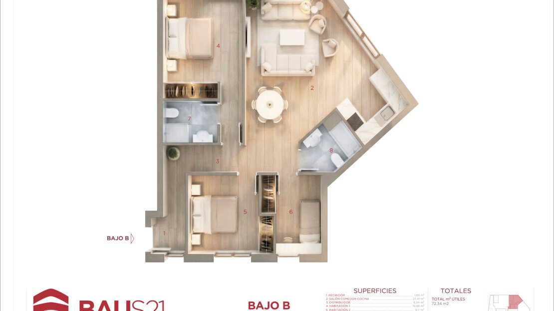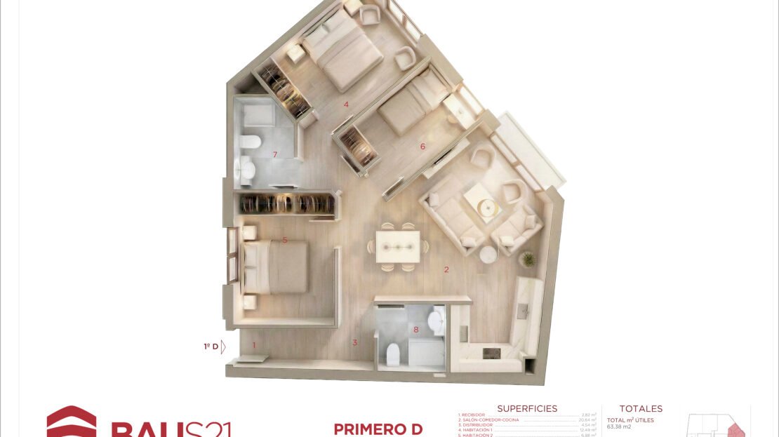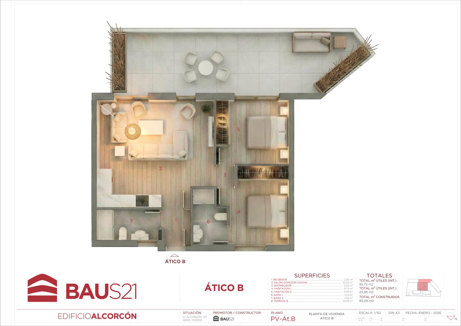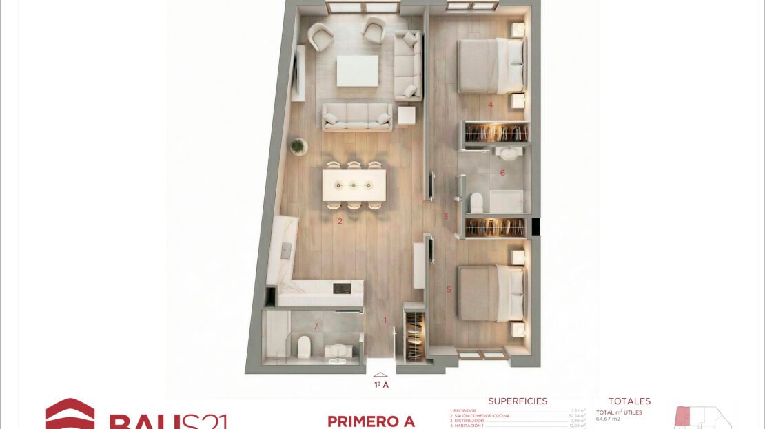 • 3 Dormitorios (con posibilidad de conversión a 2).