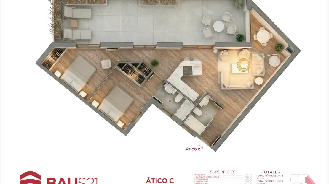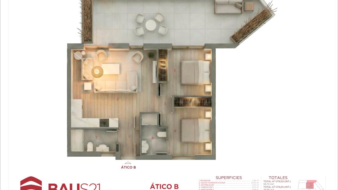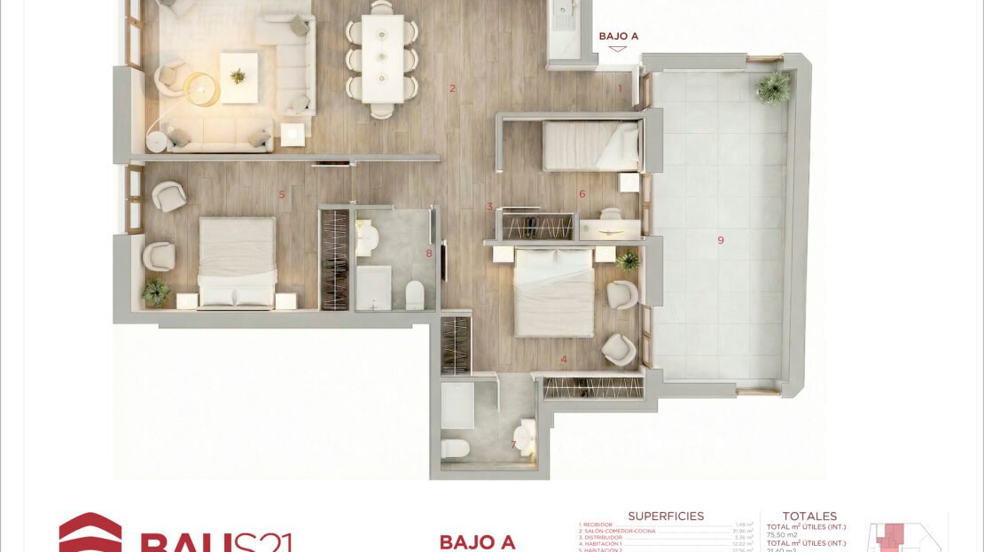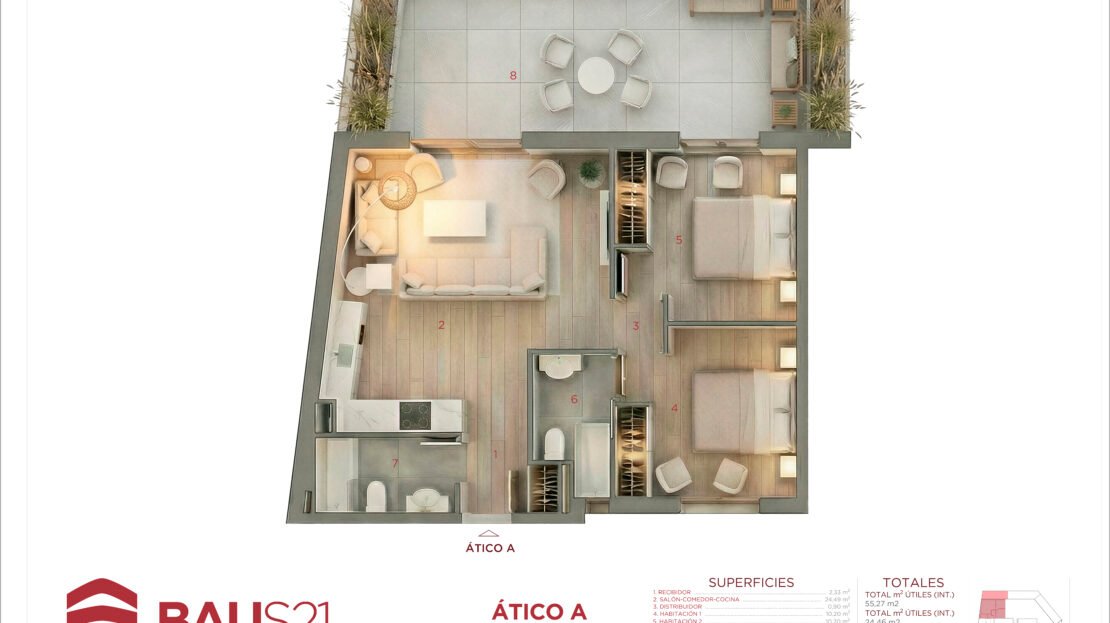 • Aticos con terraza y bajos con patio.