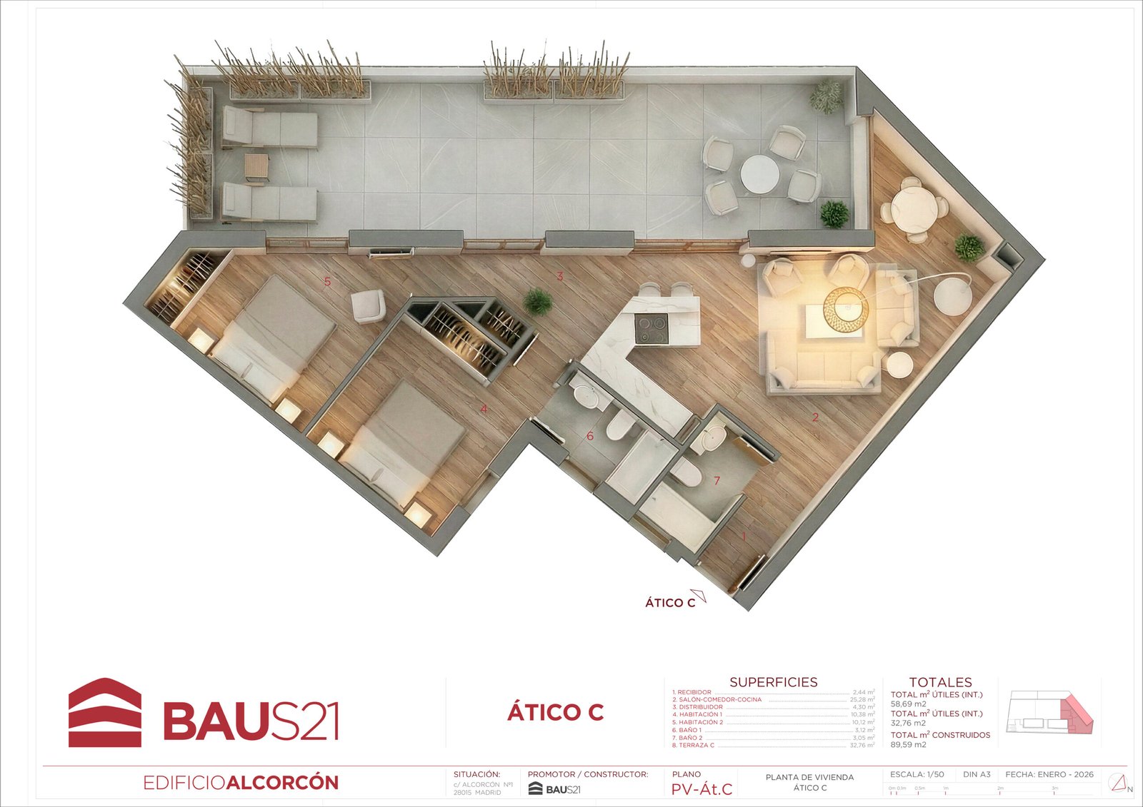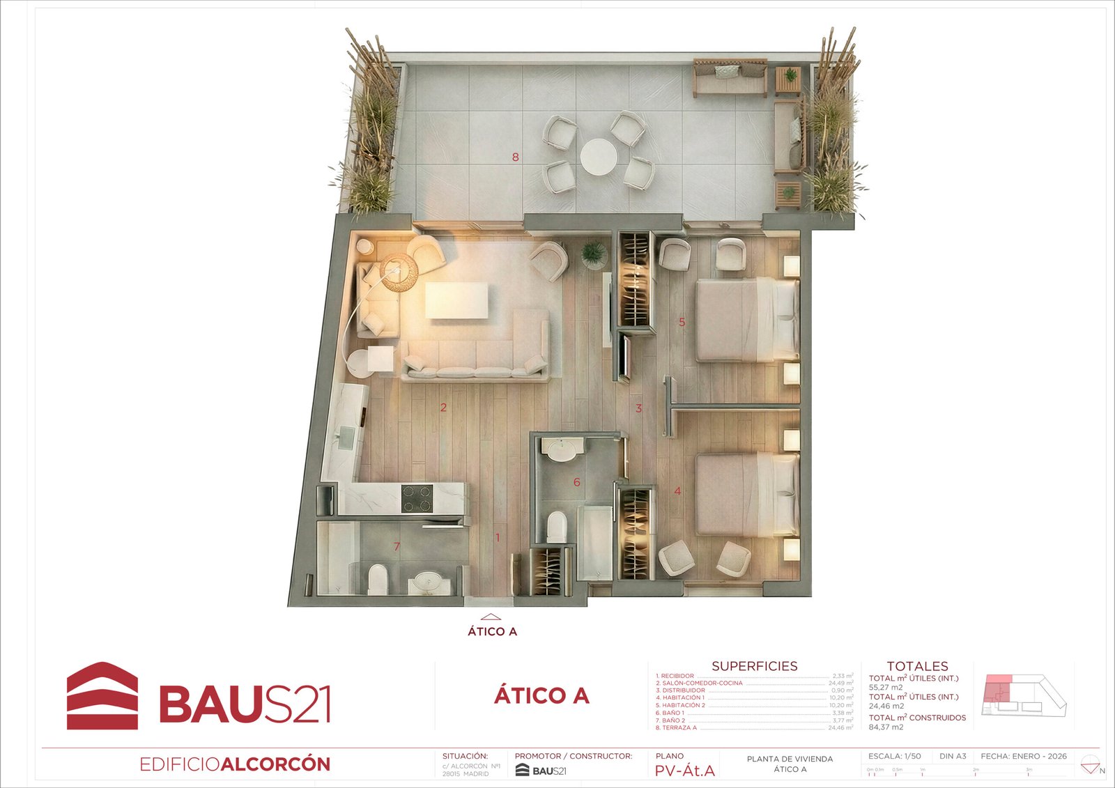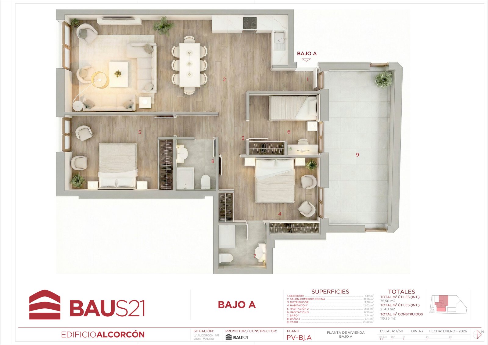 • Aticos con terraza y bajos con patio.