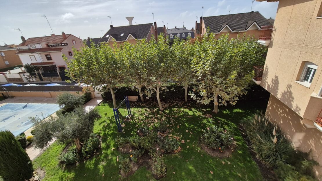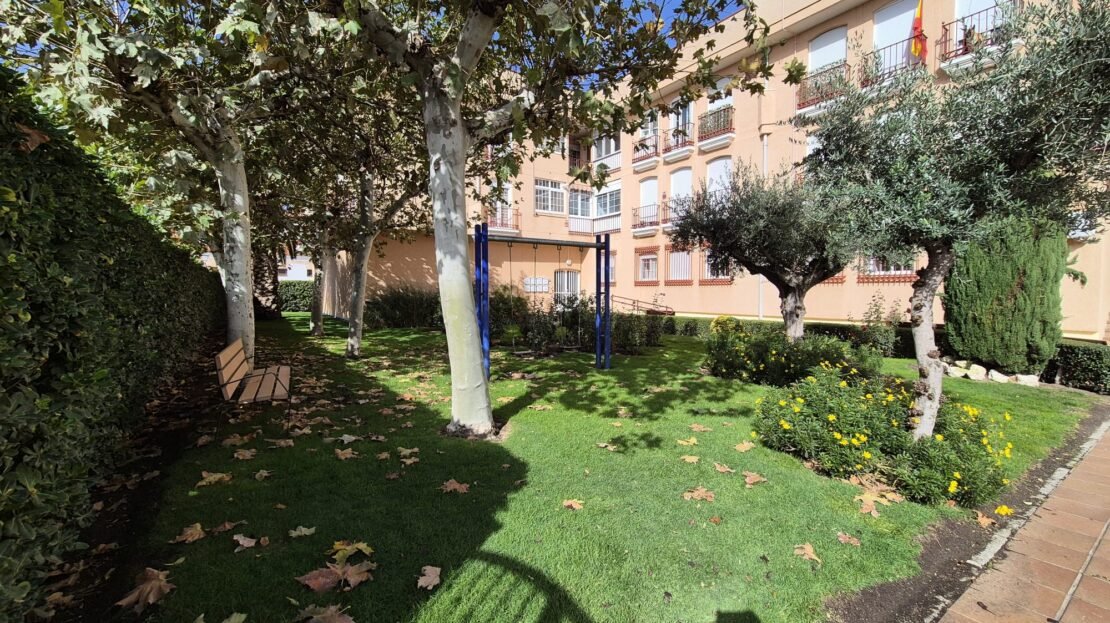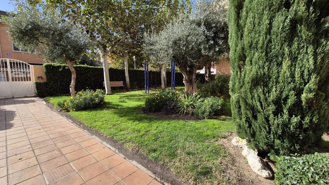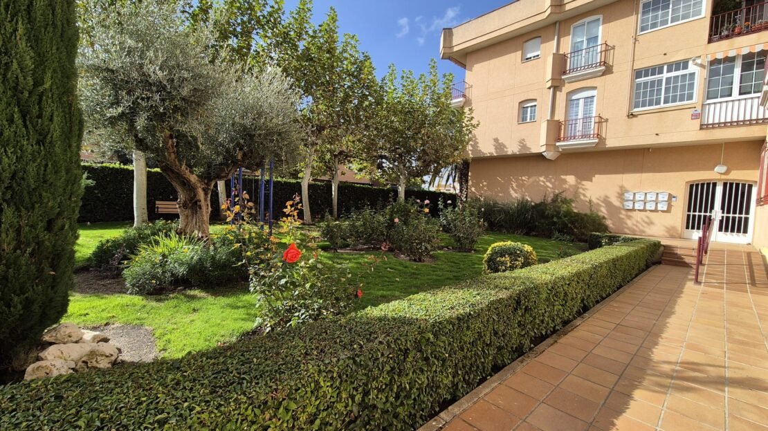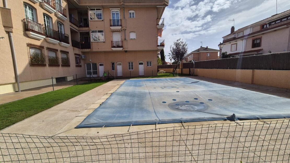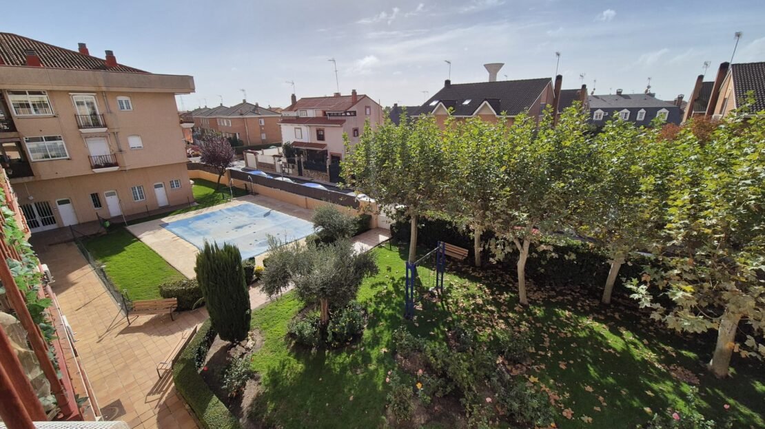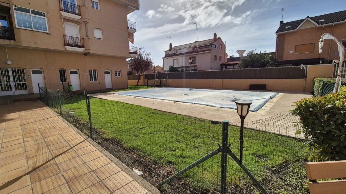 La comunidad cuenta con piscina y jardín.