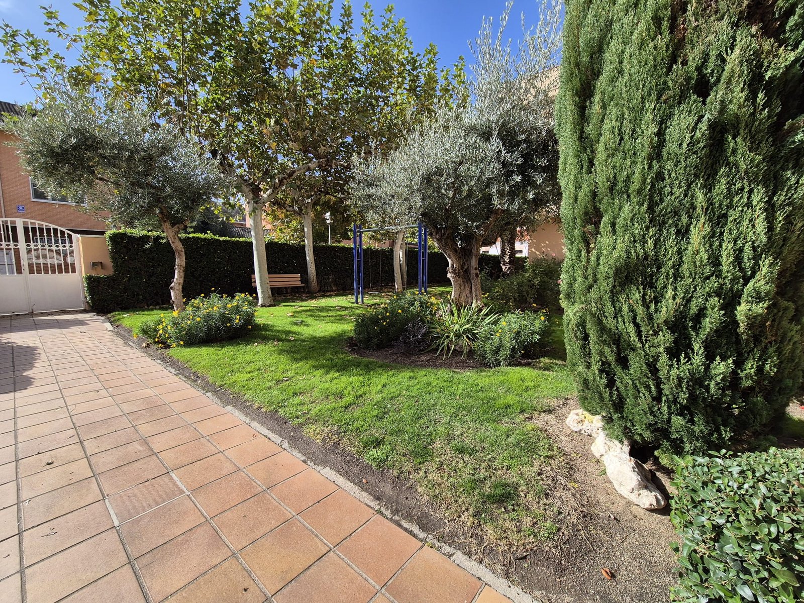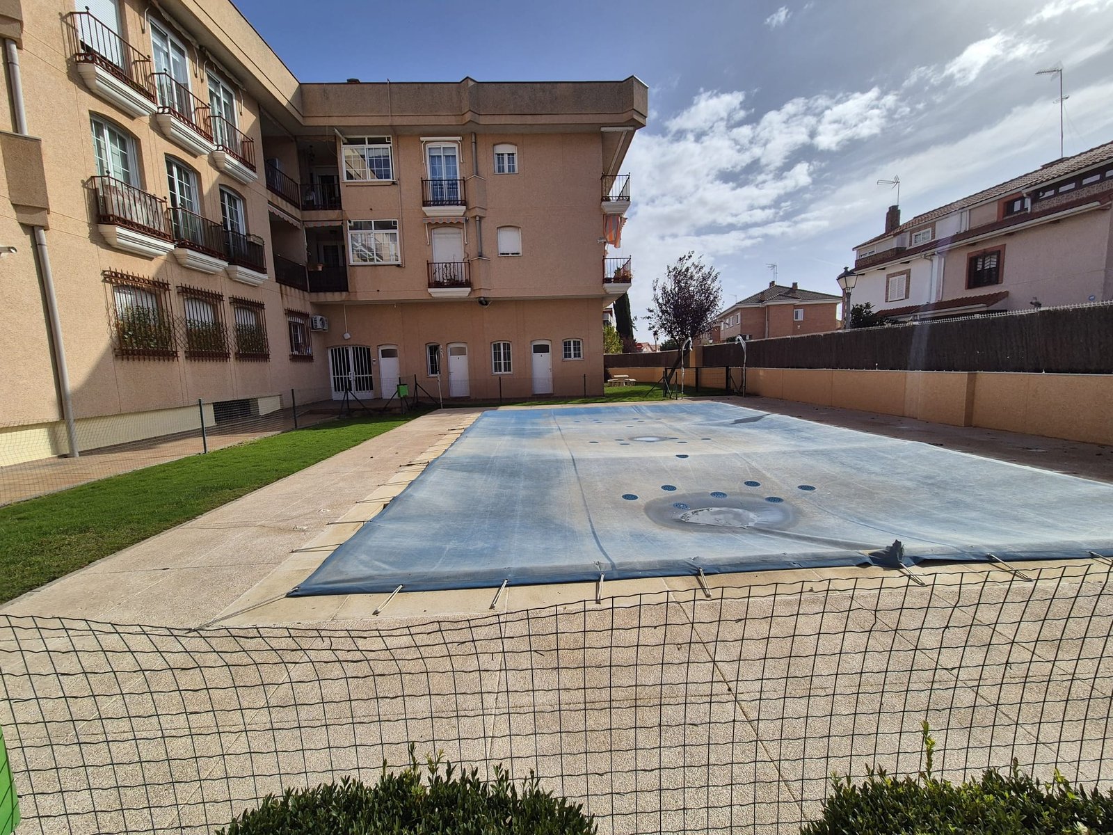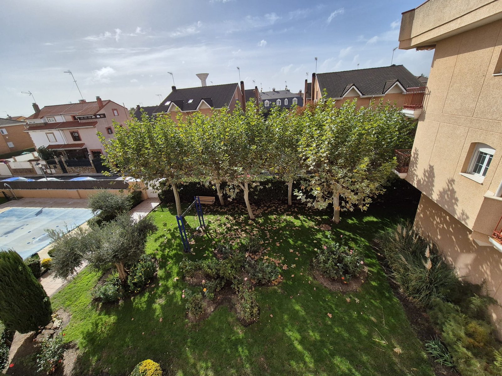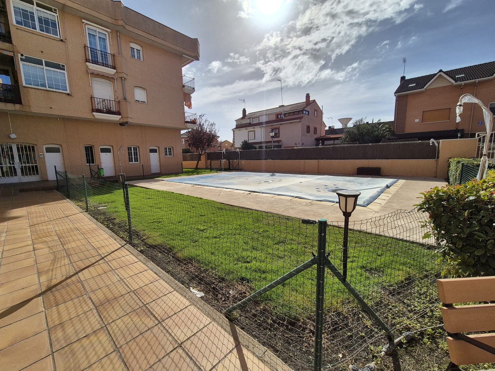 La comunidad cuenta con piscina y jardín.