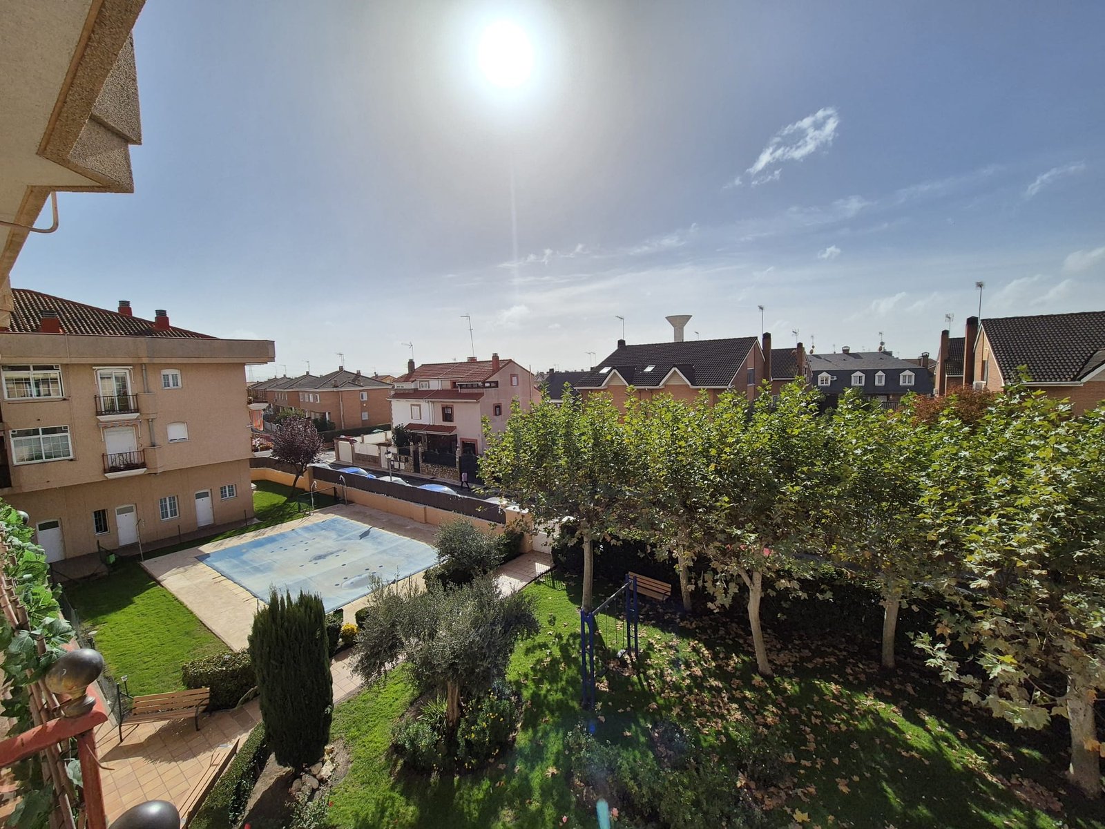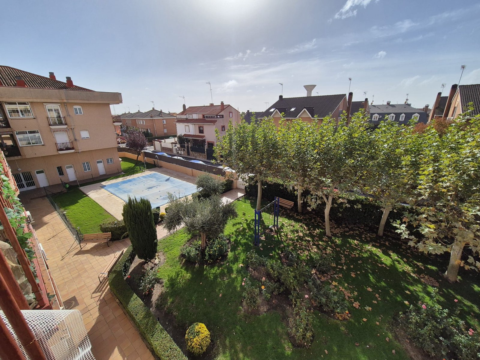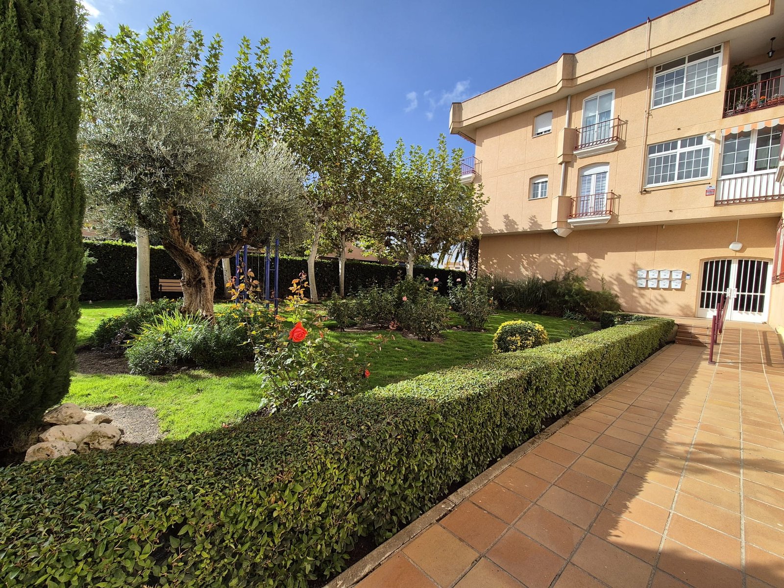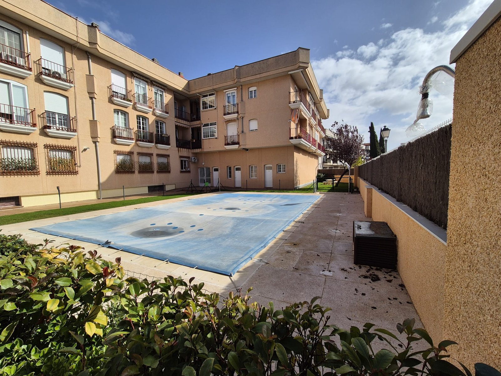 La comunidad cuenta con piscina y jardín.