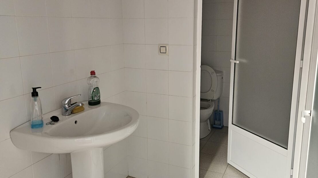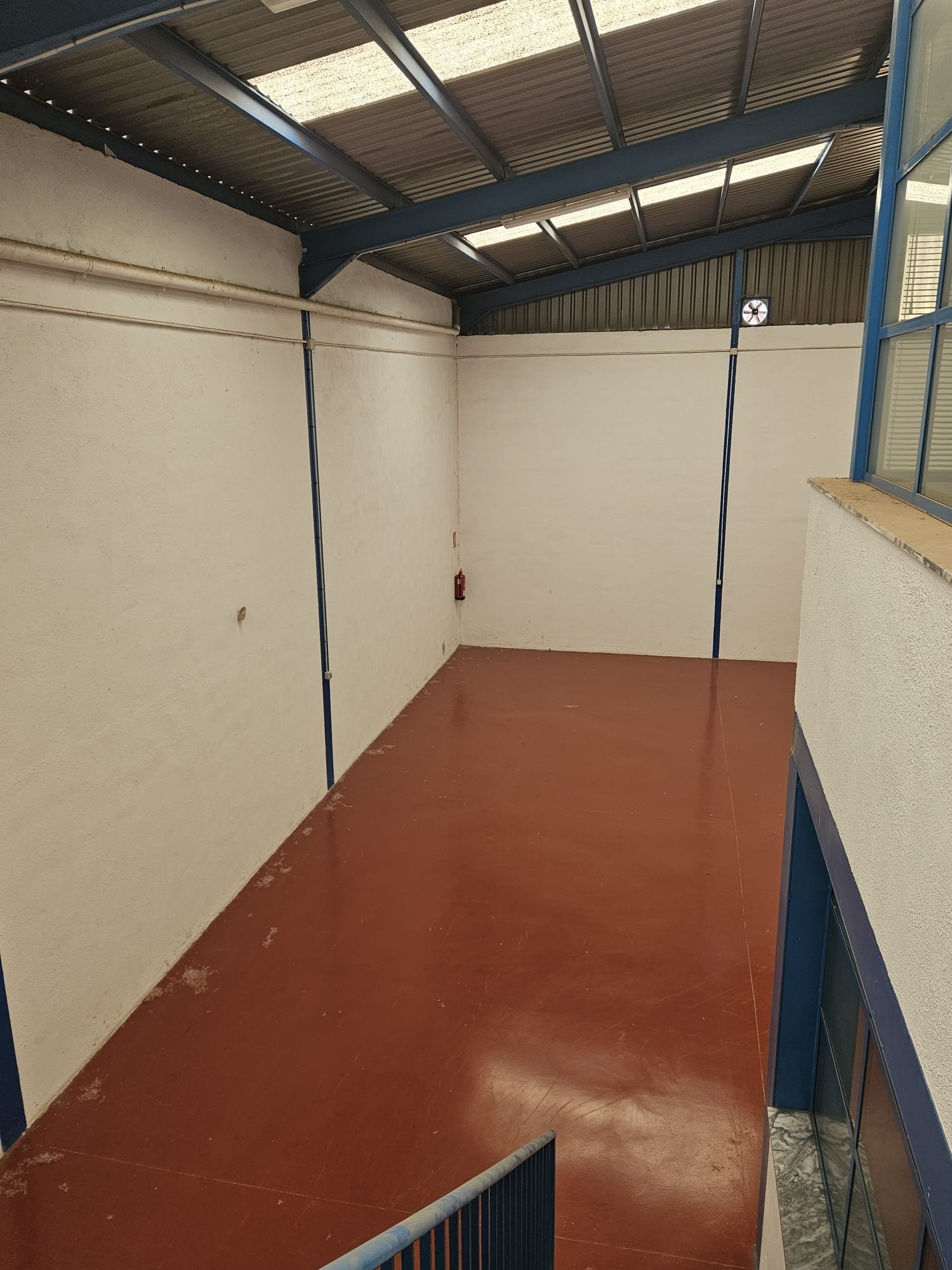 Planta principal: Recepción, almacén, dos aseos equipados con ducha y el patio